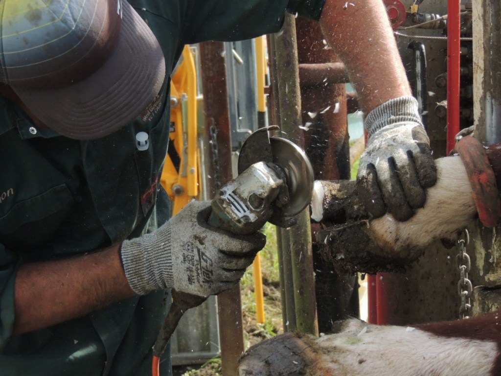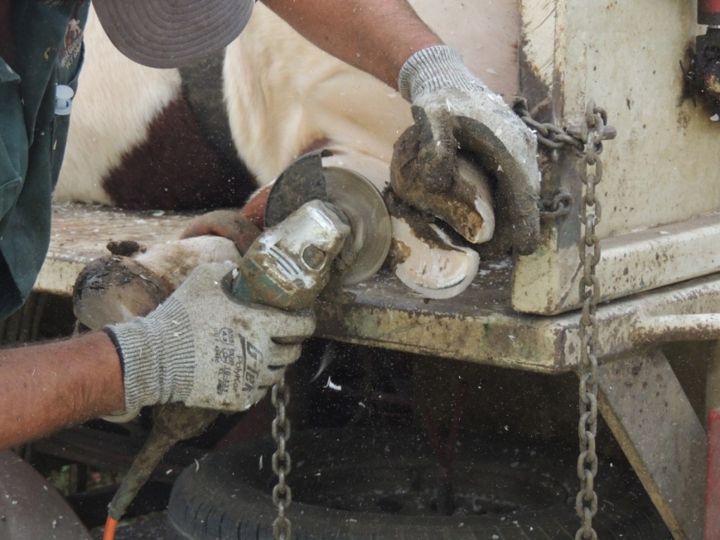 Why might we trim cattle feet? Cattle feet grow all the time, like our toenails, and the same as sheep, horse and goat hooves. Generally, they are work down by the animal walking around, especially if they walk on gravelly or sandy ground. But if there is an abundance of feed, soft or muddy ground underfoot, or the cow has less than perfect foot structure, the toes can get too long and start to curl up and deform.